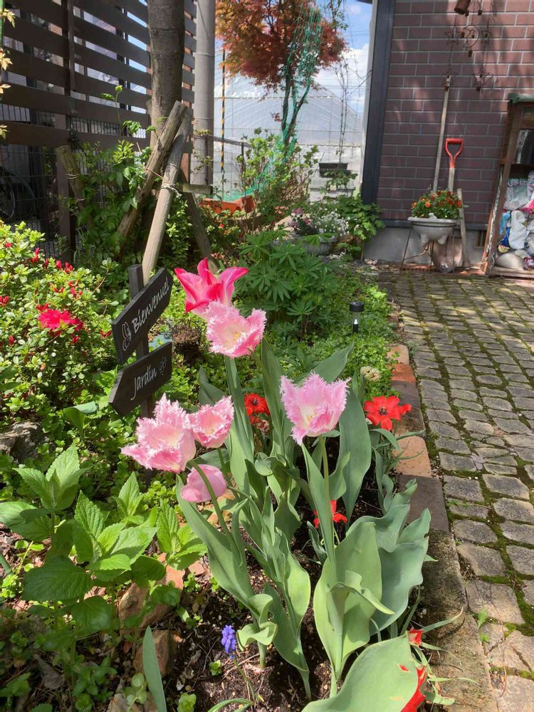 玄関までのアプローチです。チューリップもそろそろ終わりかな。