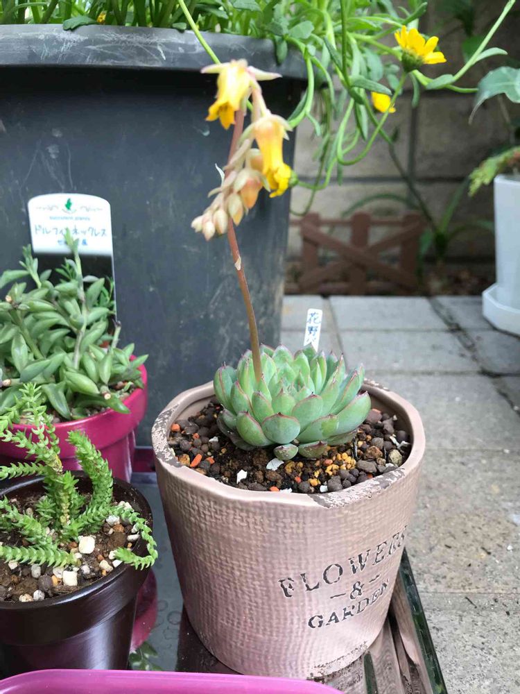 うちにいる多肉ちゃんで初めてのお花🌼が見れたから ほんとかわいい💕🌵