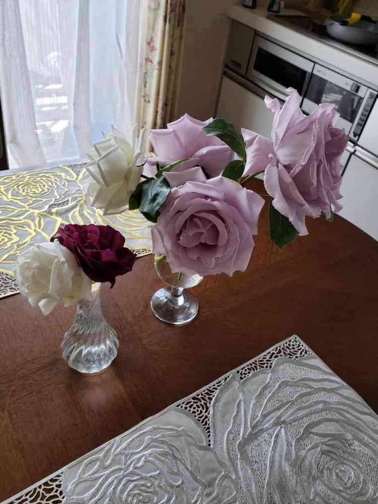 色んな薔薇がテーブルにあるって贅沢ですよね😃