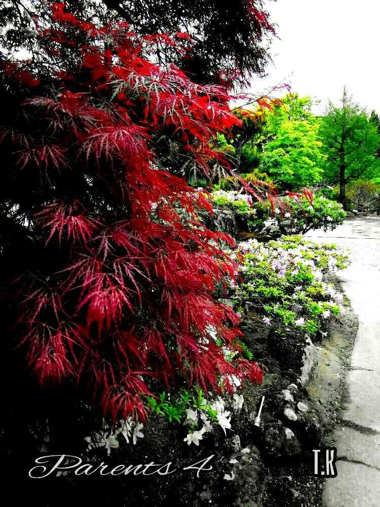 投稿したPic の1を 拡大してみてください。真ん中の木、グリーンではありますが、葉の形が紅葉っぽいなぁって思ってました。