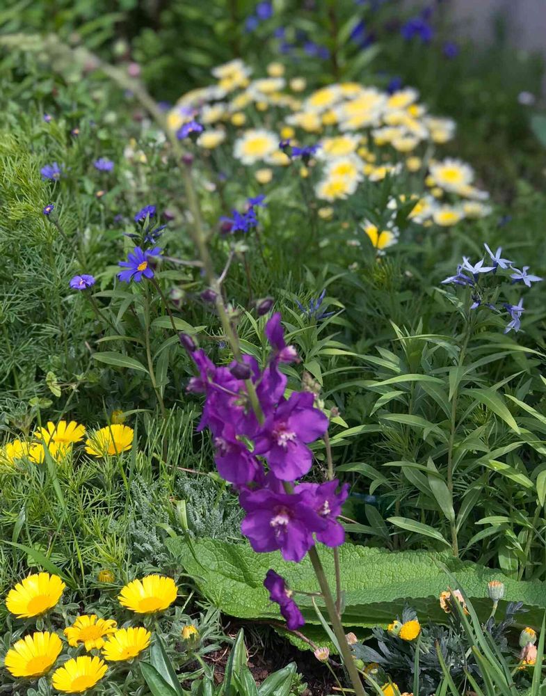 早いですね~✨もうバーバスカム咲いてるなんて(*ˊᵕˋ*)੭ ੈ青と黄色のエリア、素敵ですね❤️