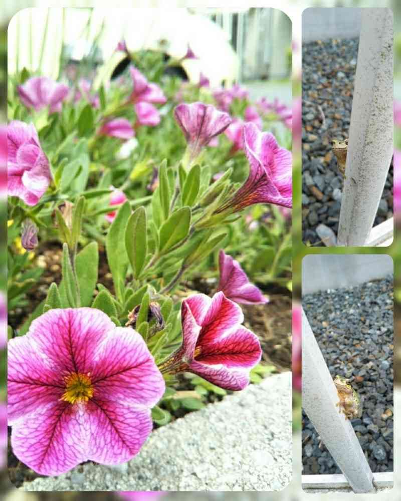 右上下は今朝雨上がりの庭に小さい訪問者がいました🐸こんにちは〜と挨拶をしたら、「ひょっこりはん」してました(笑)