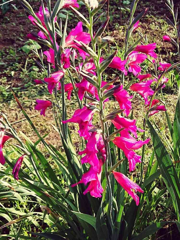 昔から実家にあって、分けてもらって育ててます。好きな花だから、花だけ見ても、早咲きグラジオラスだとわかります🤗❣️。この濃い赤紫色?、濃いピンク色?、が大好きなんです😊💕💕。