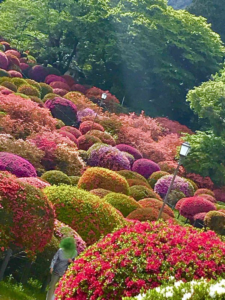 鶴峯公園は、赤、紫、ピンク、白、30余種3万株もの色とりどりのツツジが咲き乱れます。