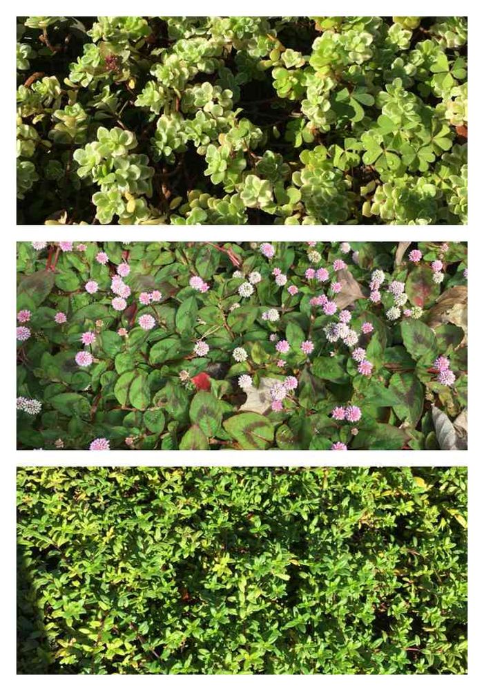 グランドカバー三姉妹。放っておいてもモリモリ。ただし、間から生える草抜きとゴミが引っかかるのが玉にキズ😓