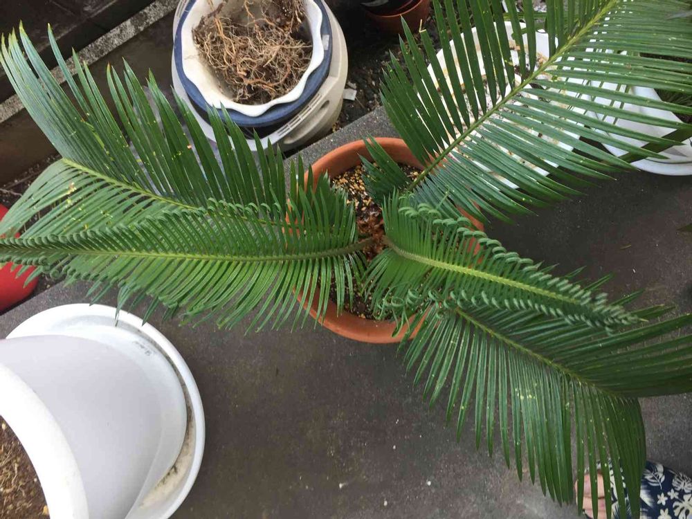 五葉松やハイビスカス🌺の世話してる間に、ソテツの新芽が、いつの間にか、こんなに伸びてました😅