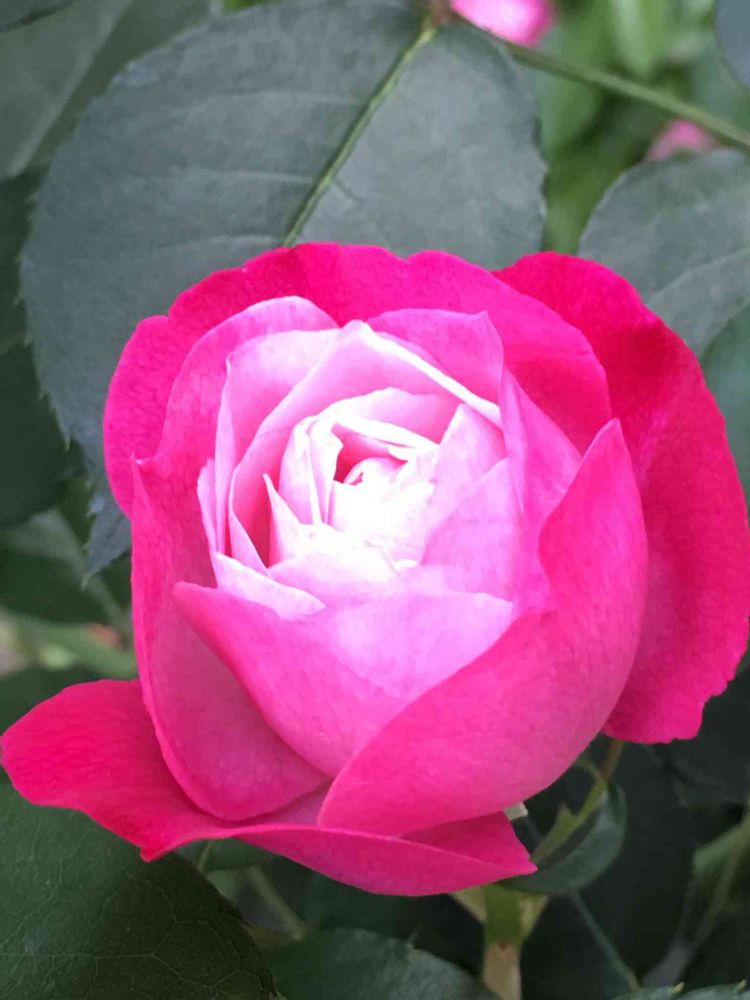 ソフューズさん、外側から内側へ濃いピンクが薄くなっていくグラテーションが気に入っています。iPhoneで撮ると、なぜか中心部がブラックライトを当てたように蛍光するのですが、何も補正かけてません。