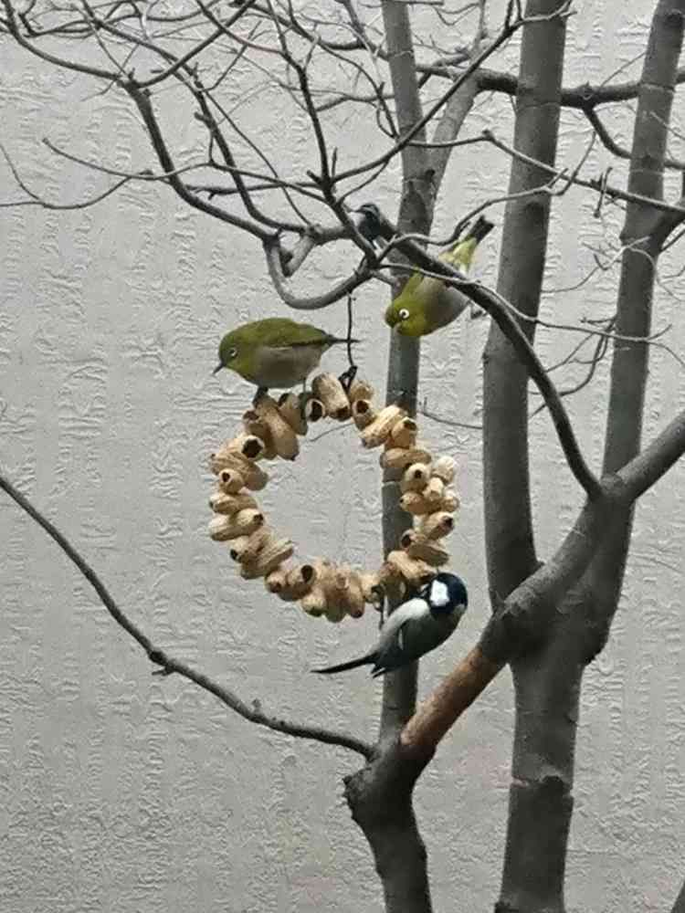 3月、落花生のリースにメジロとシジュウカラが来てくれました♪