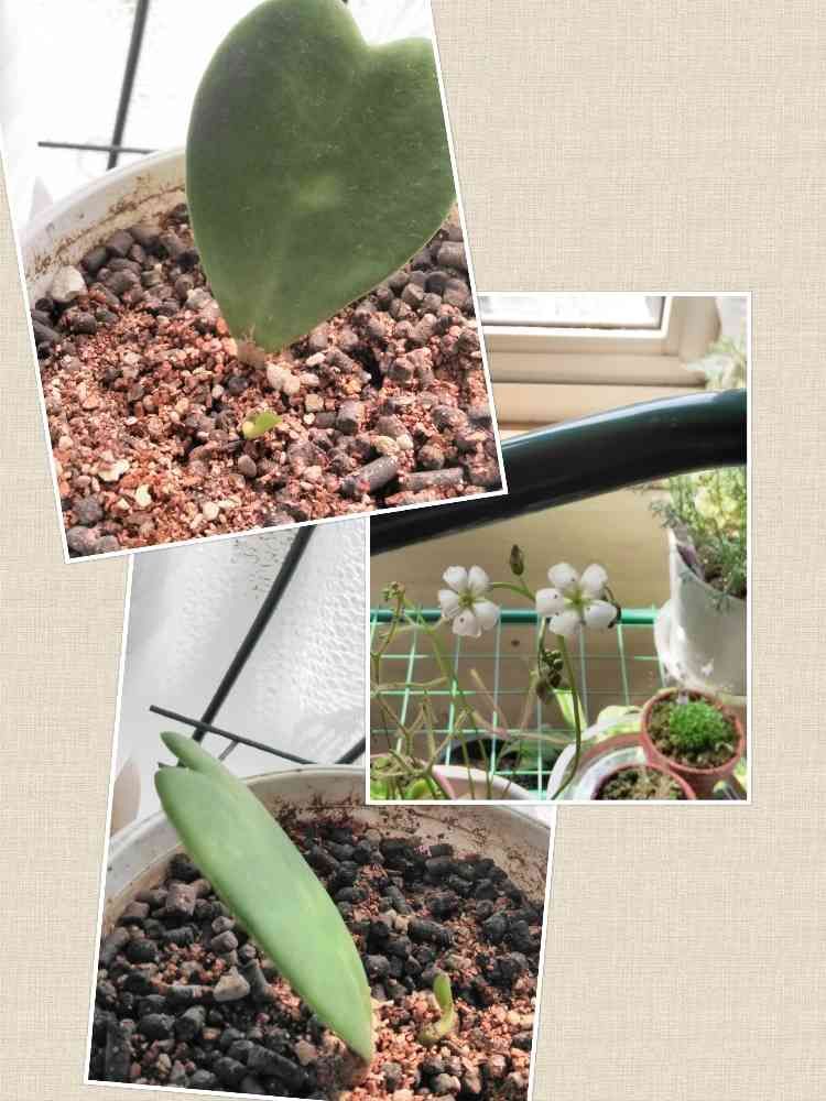 モウセンゴケには花が咲き、ハートホヤからは新しい🌿が出てきました💕