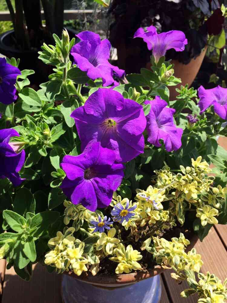 サフィニア ヘブンリーブルー,斑入り ブルーデイジー,寄せ植えの投稿画像