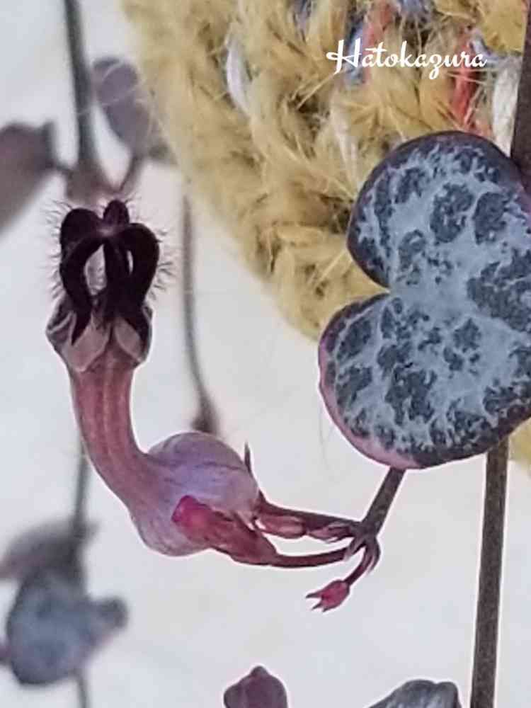 長く伸びた蔓に模様の綺麗な葉 魅力的な観葉植物に花芽が出て来ました