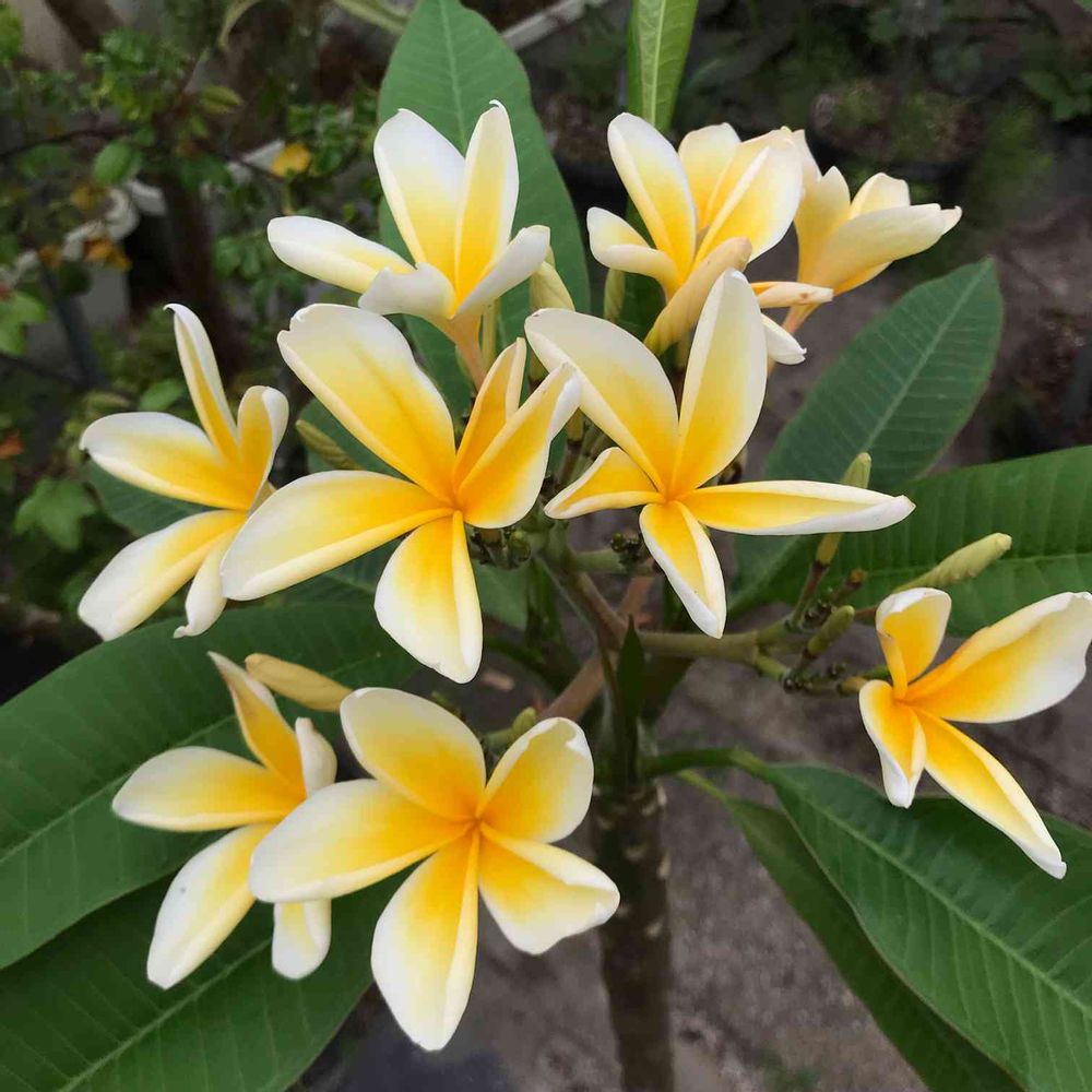 バリ島生まれのプルメリア、Bali Hai Goldが本気咲きしています🌴