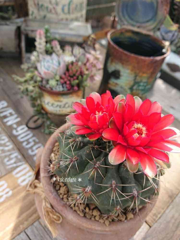 このサボテンの真っ赤なお花🌼覚えてる~🎶