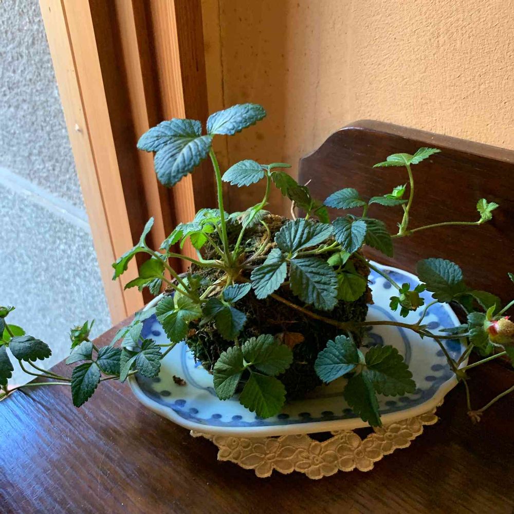 ヘビイチゴもかわいく苔玉に😃