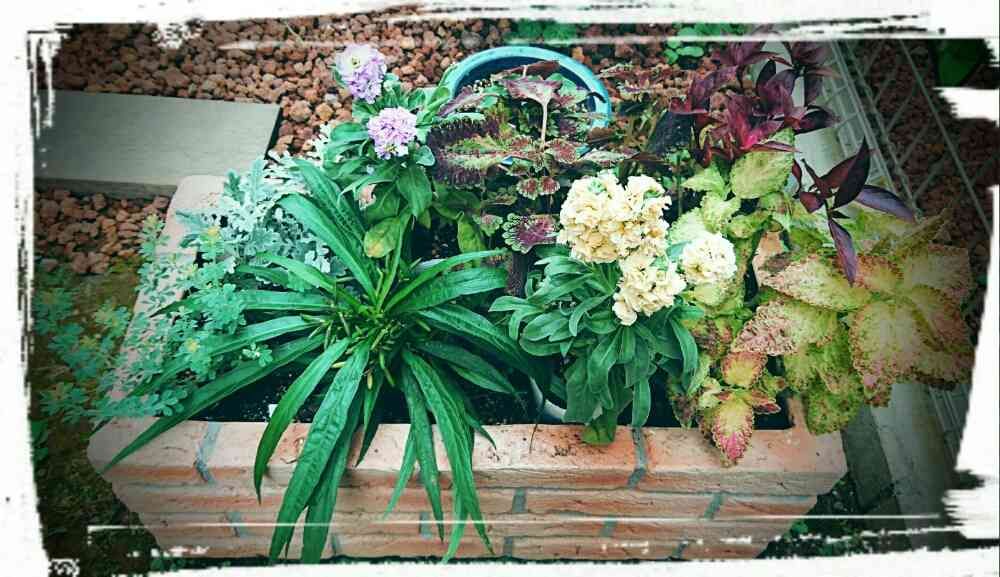夏のコリウスもそろそろ終わりなので、秋冬に八重咲きストックや赤葉千日紅を付け足し予定(*´ω`*)