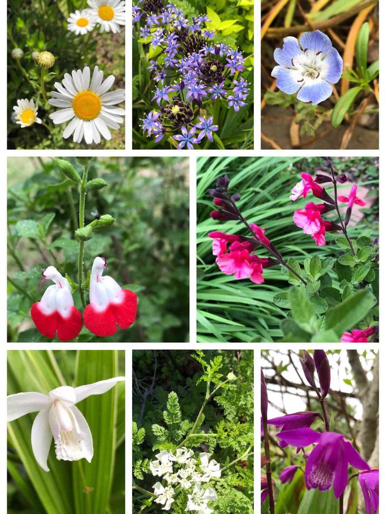 上右のネモフィラが一輪だけ零れ種で、道路沿いの花壇に咲いていました。