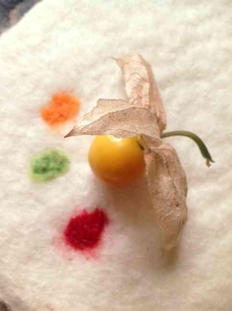 [@id:4091] さん 完熟してるとフルーティーで美味しいですよ^ ^下のは羊毛の鍋敷きです(*^^*)by息子作(中学の時家庭科で作ってきた)です