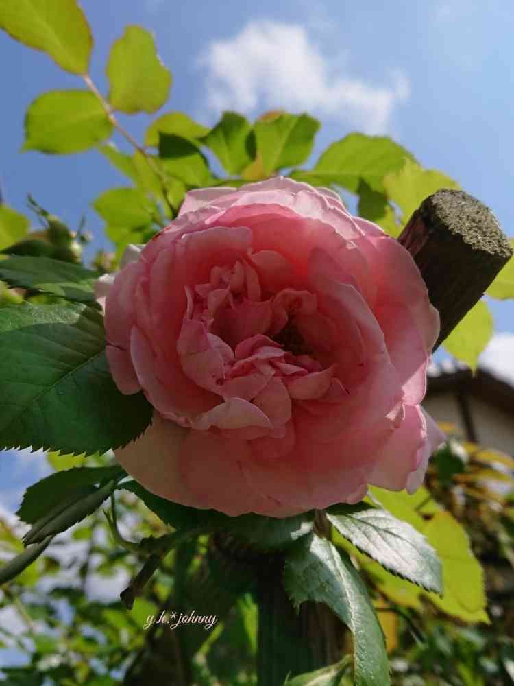 朝、水やりで1番花が咲いてる😃でも、お隣さんの庭の方向いてます。🌹🌹**