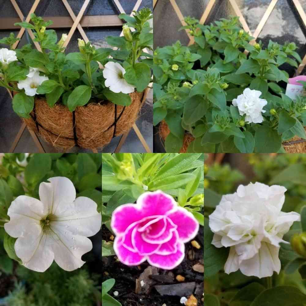 りょうたんさんさんの小さな庭,サフィニアピュアホワイト,カリブラコアスーパーベルダブルピンクリップルの投稿画像