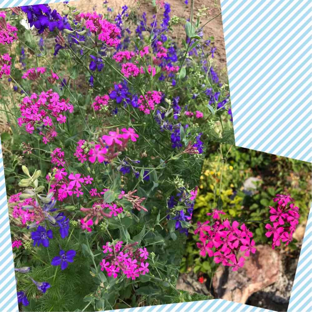 千鳥草とピンクの花🌸このピンクの花は何という花でしょうか❓庭のあちこちに咲いてます🤔