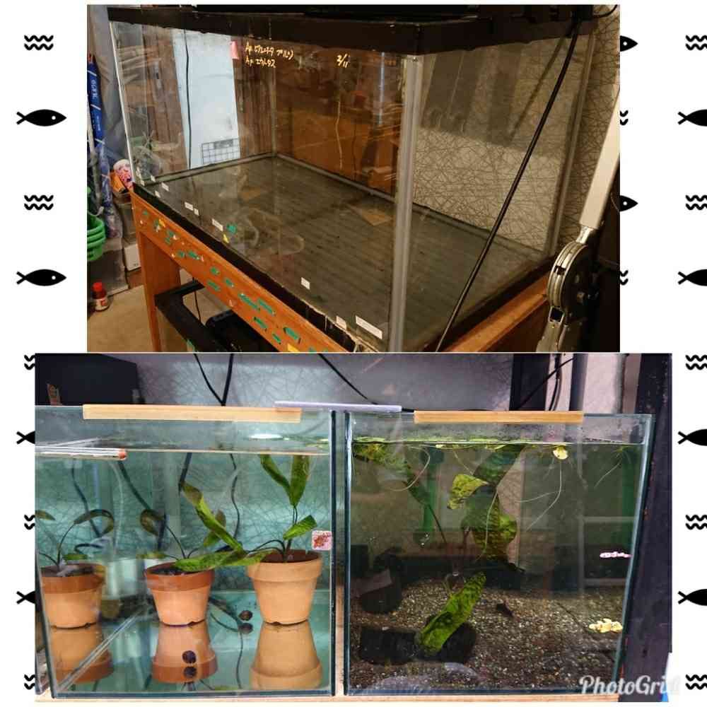 ・立ち上げ水槽に水漏れ水槽の上澄みと新しい水を張って濾過開始。