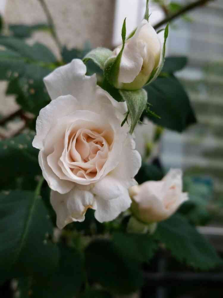 香りのイイエンシェンフォーターラウ🌹🌿一季咲きですが、素晴らしい薔薇で大好きです☺咲ききると、フンショウロウを大きくしたような感じです🎵雨が苦手な繊細さもあります😁