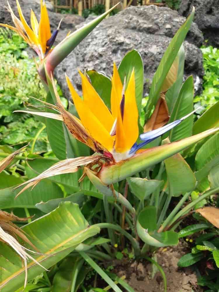 南アフリカ原産の観葉植物。名前の通り、鳥っぽい花をつける。とさかっぽいところが花で、くちばしっぽいところが苞。属名からストレリチアとか呼ばれることもある。