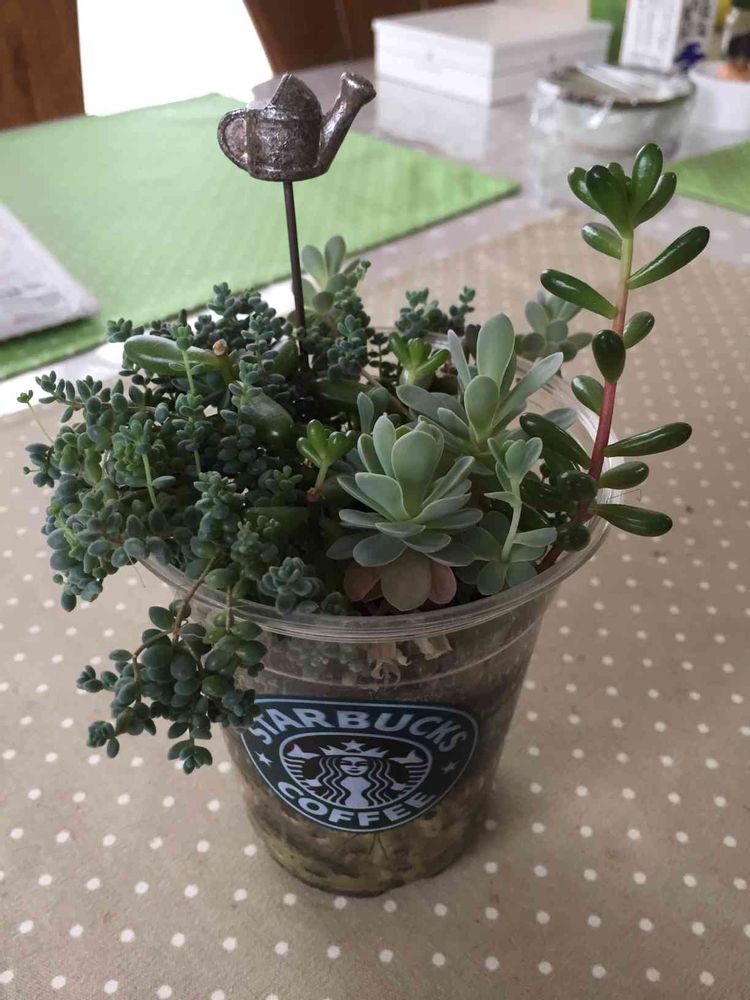 スタバのカップもかわいく見える多肉ちゃん効果ー(^-^)