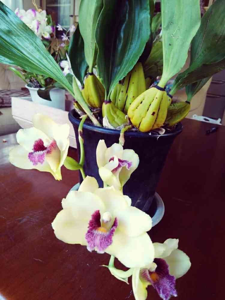 あっ❗セロジネの仲間ですね😃 デンドロではないですね。それにしても立派なバルブでお花もしっかりしています🎵 ありがとうございます😄