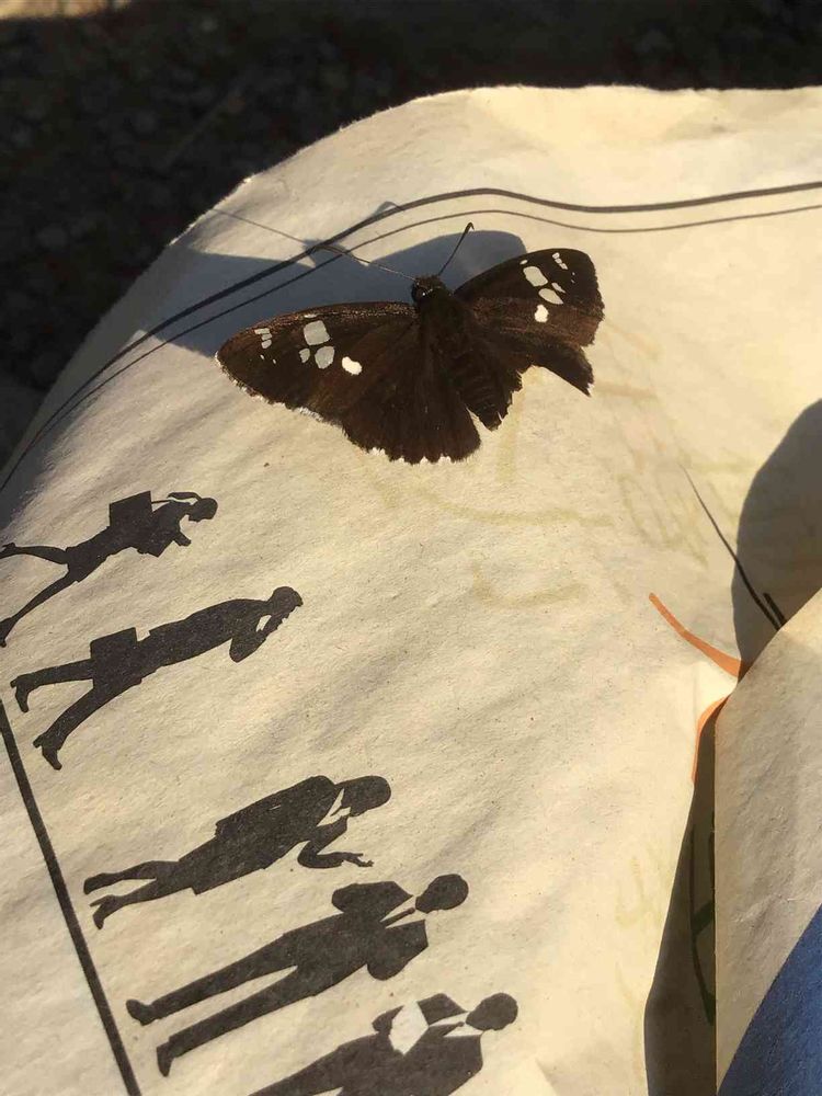 古新聞の上に 乗せて 毎日 干しているんですが、その新聞紙の 端っこに この黒っぽい蝶🦋は 止まっています。