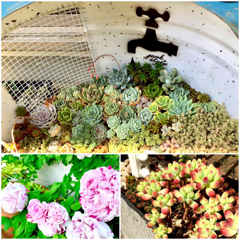 どこを見ても可愛い鉢やプランターに多肉達が美しく寄せ植えされ、DIYの扉や目隠しで飾られ、まるで海外のお庭にいるような感覚でした💖