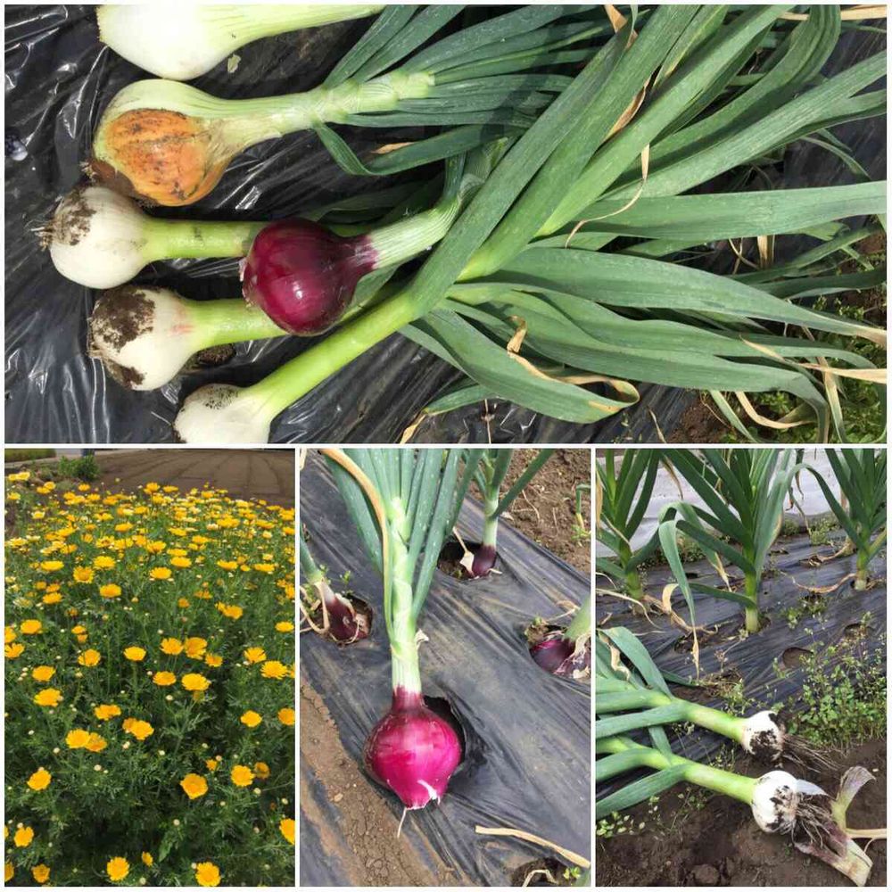 ホワイト6片ニンニク、玉ねぎ、赤玉ねぎの試し採り😊