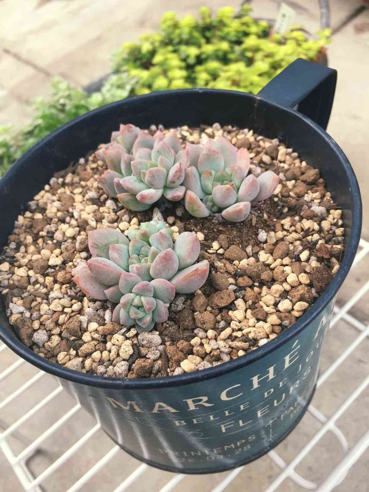 素焼き鉢にしようか迷ったけど、この鉢の色がプロリちゃんに似合う気がして、今まで入っていた子をお引越しさせての植え替え💦