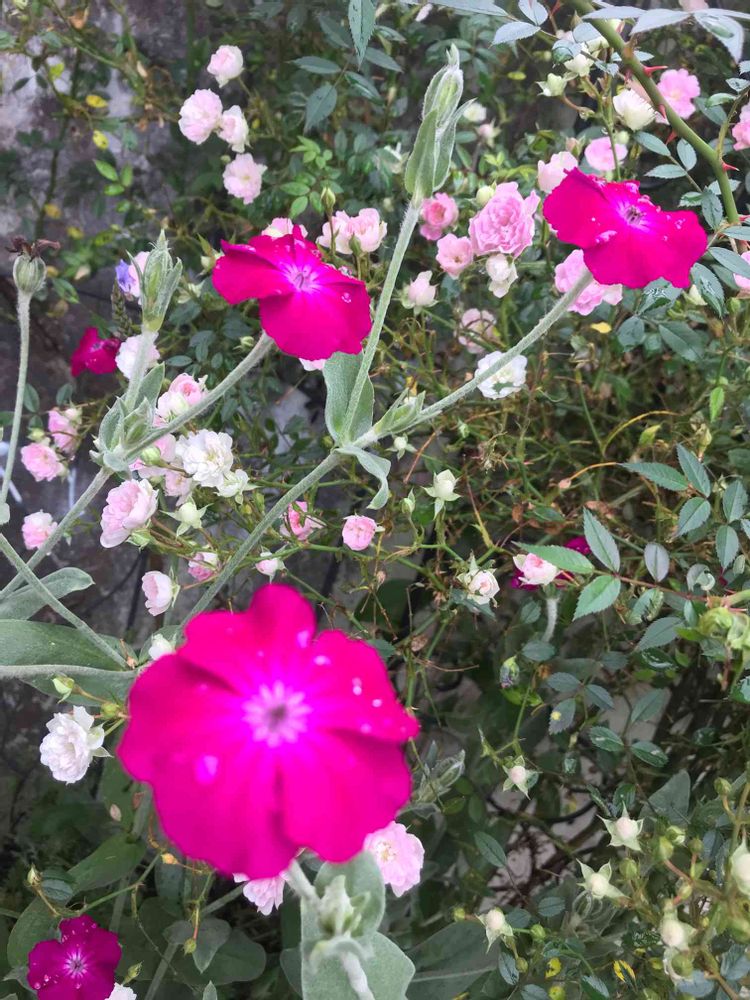 ミポリンさんの玄関,フランネルソウ(スイセンノウ),バラ(夢乙女)の投稿画像