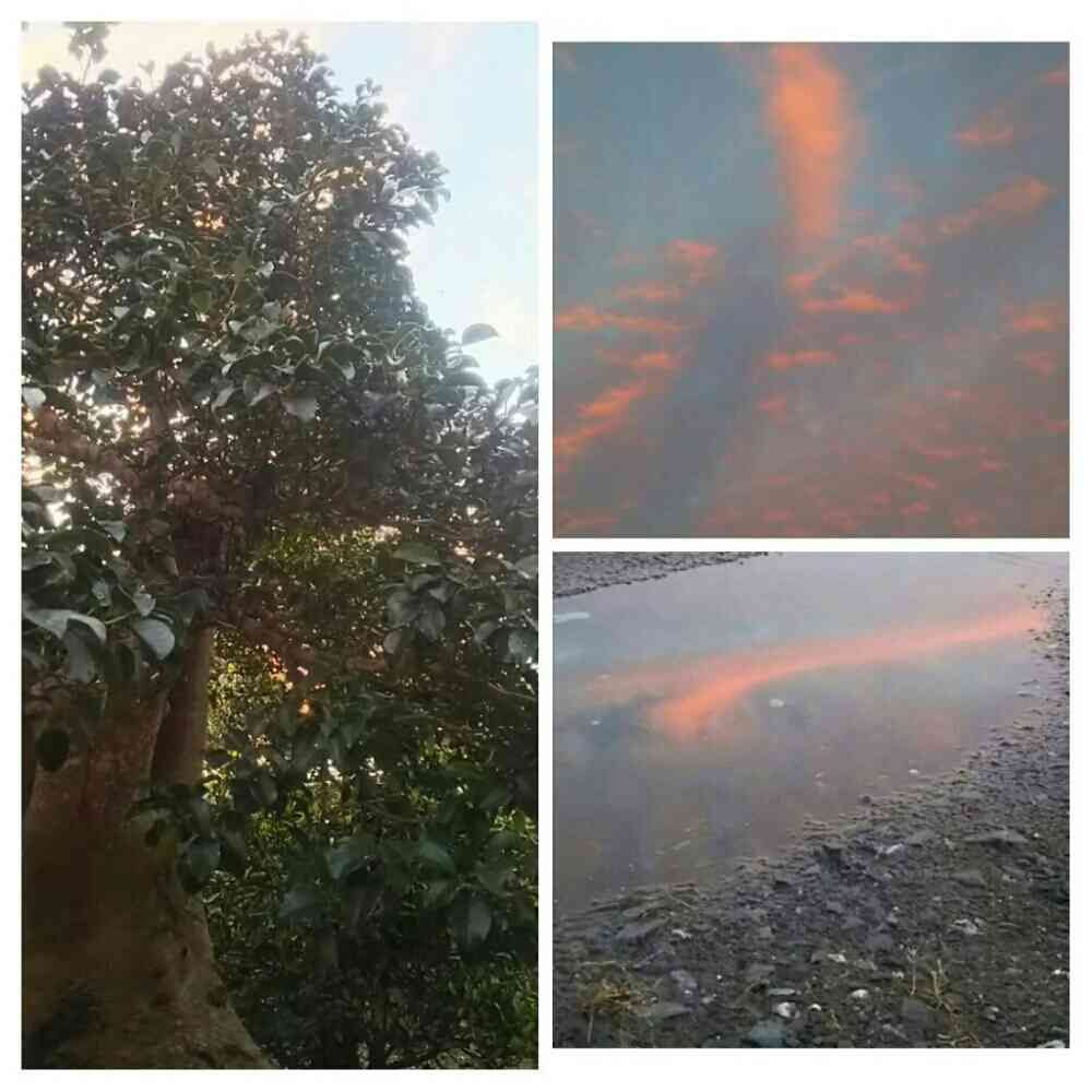 水溜まりに 夕焼け