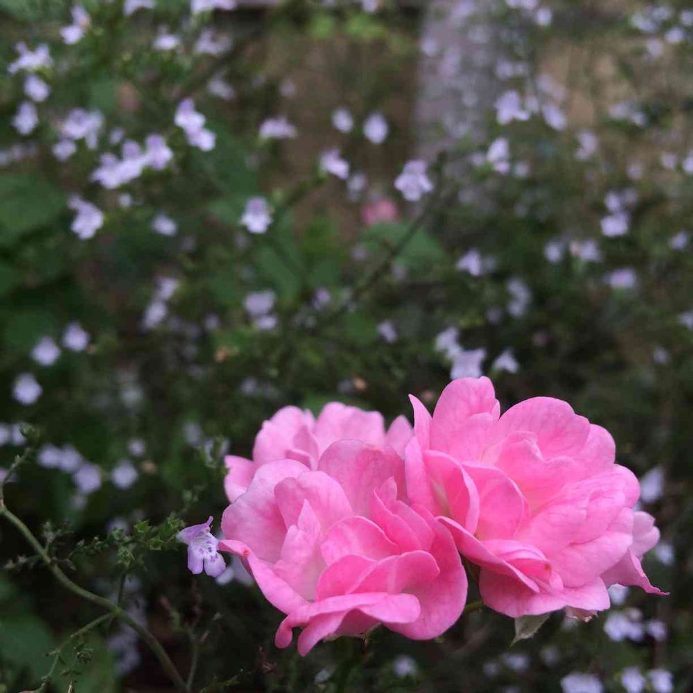 もう少し横に目を向けるとカラミンサと薔薇のコラボ😊💕
