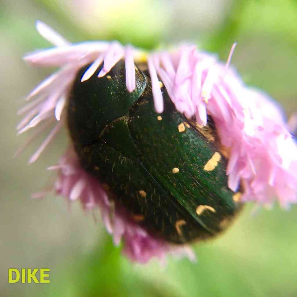 ハルジオンと ど根性ハナムグリ(コアオハナムグリ)