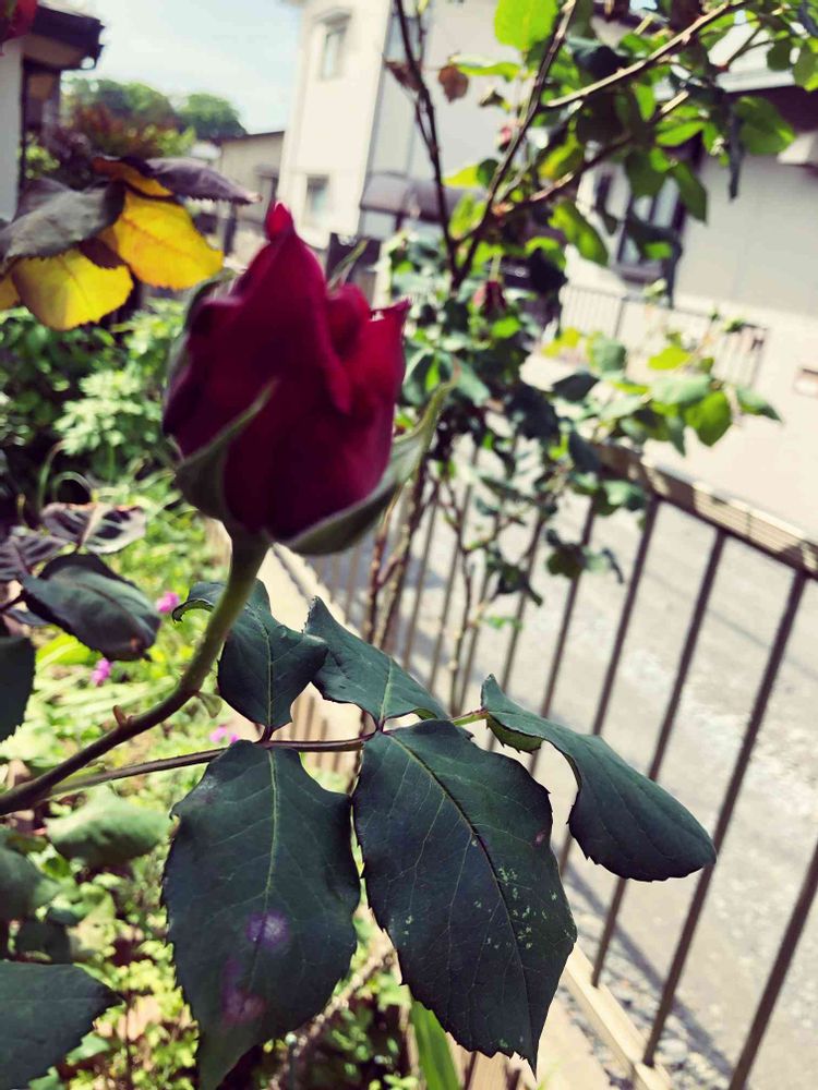 名前はわからないけど真っ赤なバラ🌹 もう少しで咲きますよ🌹