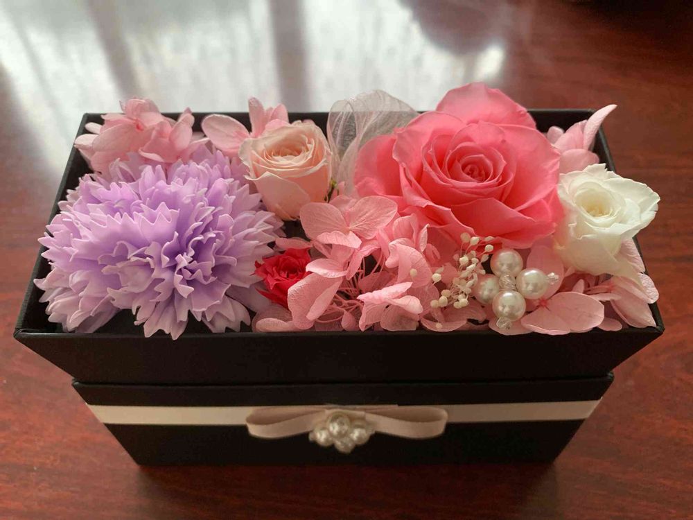 生花はいつか枯れてしまいますが、これなら美しい状態をキープしたまま楽しめて花の香りもするので、大変気に入ってもらえました😆💕母の日当日ならもっと良かったなって思います😅