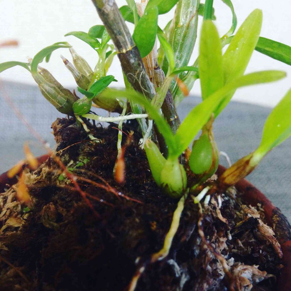 うちはまだそんなに蘭の種類ないから、ミニ温室から1つずつ出してキッチンのシンクで霧吹きしてるよ〜