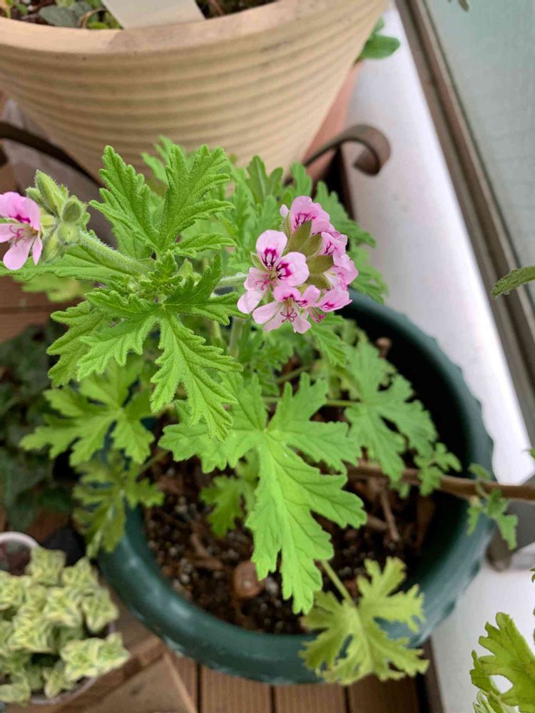 大好きなローズゼラニウム、今年も咲きました😆この季節ベランダ楽しい〜💕
