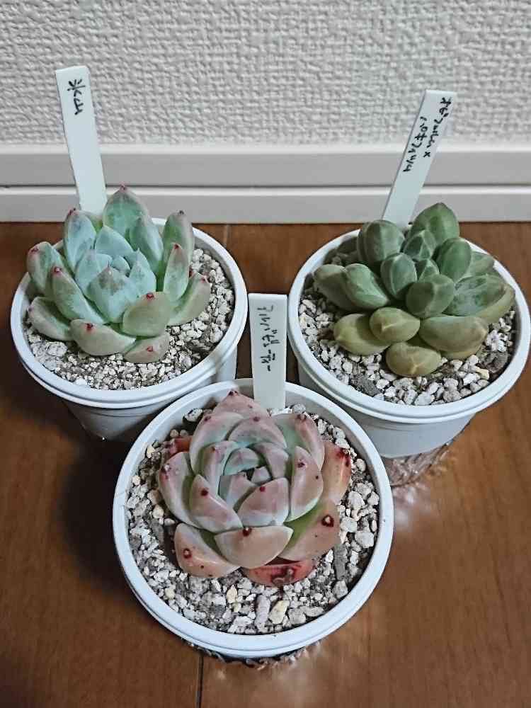 GW前にポチった多肉さん、GW明けにカワイイ梱包で届いてこないだ植え替えた😆💖手前がアルバビューティー、奥左が氷山、奥右がオビフェルム×パキフィツム🍀✨