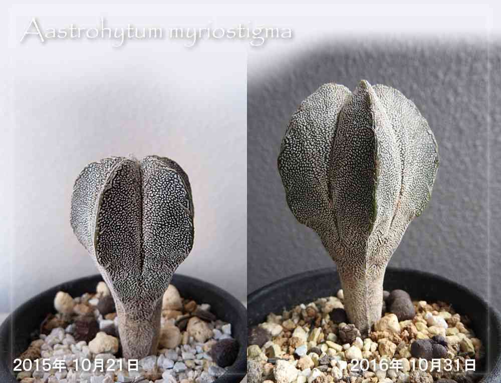 アストロフィツム・恩塚ランポー。こっちは約1年の成長。……変わらないと思っていたけど、大きくなっていたんだなあ……。去年は寒いころに根本が柔らかくなって「枯れる!」とあおくなったので、今年は気をつけないと……深く植えてあげたいけど、なかなかいい鉢がない。