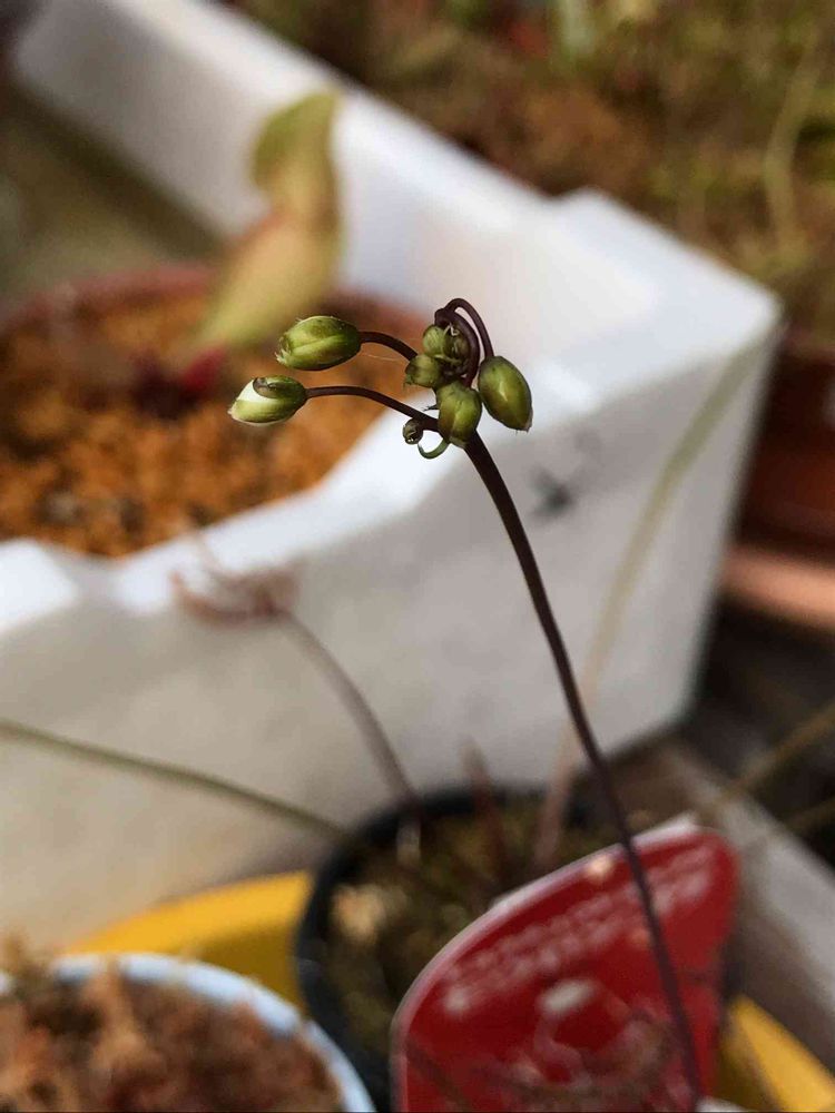 モウセンゴケの深紅からつぼみが出始めました。かわいい花が咲きそうな予感(・∀・)