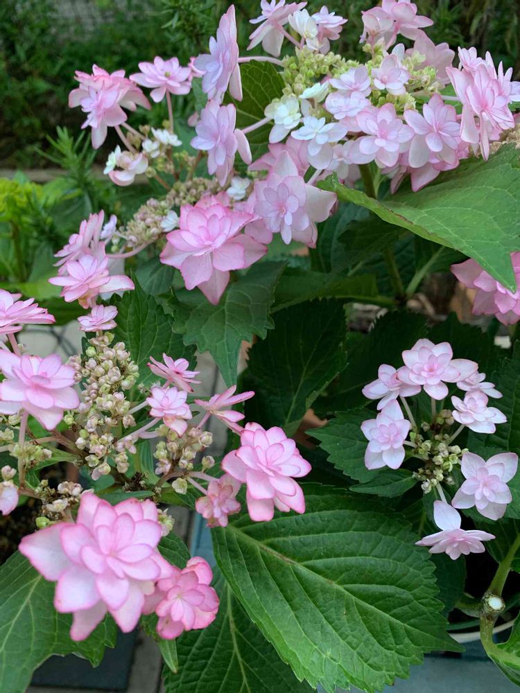 去年買った2鉢の紫陽花 万華鏡とアナベルはまだ蕾です。