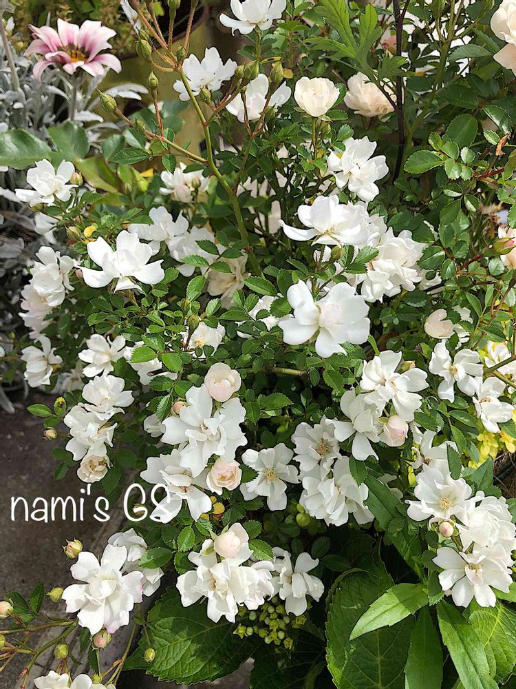 この鉢にはレンゲローズとグリーンアイス、ベビーロマンティカが寄せ植えになってますが、ダントツの花付き❤️