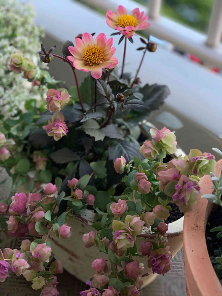 ぷちダリアは単体で植えようかと悩んだ挙句、オレガノケントビューティーと合わせてみました🎶