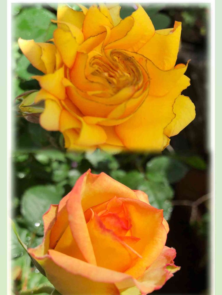 黄色い薔薇🌼も咲いてきました。上の写真、蕾の先頭部が黒くなり病気かと思い、スプレーをかけていました💕実は白い5センチぐらいの🐛発見。今はやっつけましたが悲しいことに😭