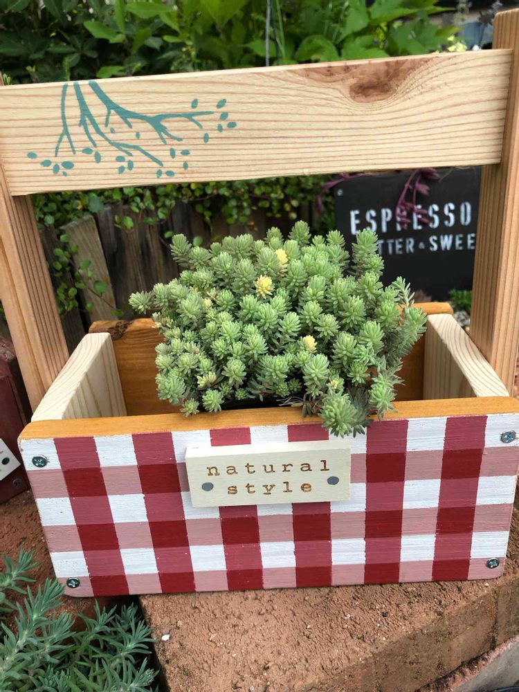 これは試作した分だけど、色違いで赤とブルーのギンガムチェックの木箱を作ったよ〜(o^∀^o)♥️💙