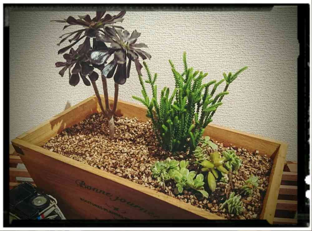多肉ちゃん木製の鉢に植え付け完了!ちょっぴりジオラマ風味(*´ω`*)